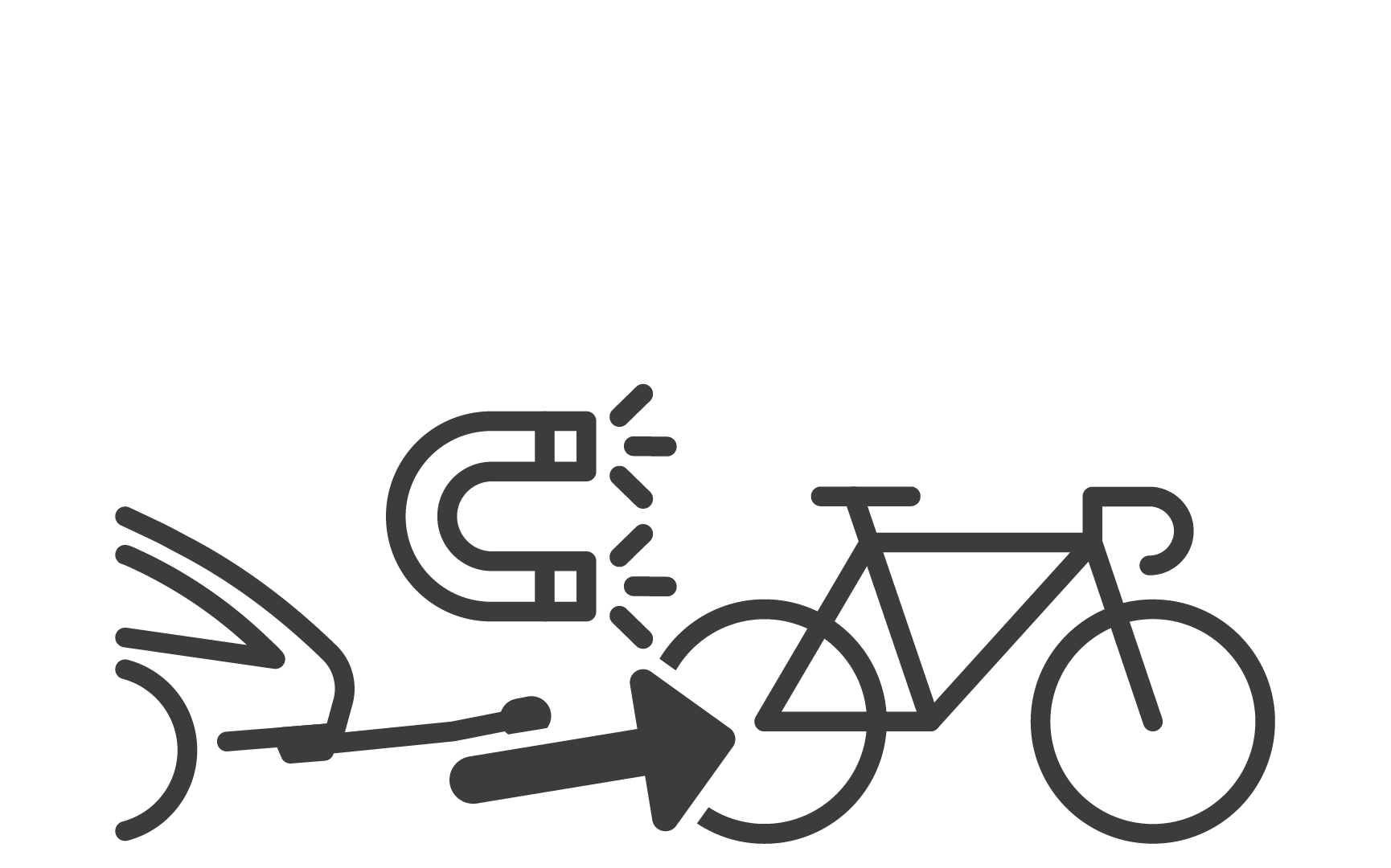 Die Kupplung wird an der Hinterradachse Deines Fahrrads angebracht. Über eine Vierfach-Sicherung verbindest Du mit der Deichsel Fahrrad und Kindersportwagen.