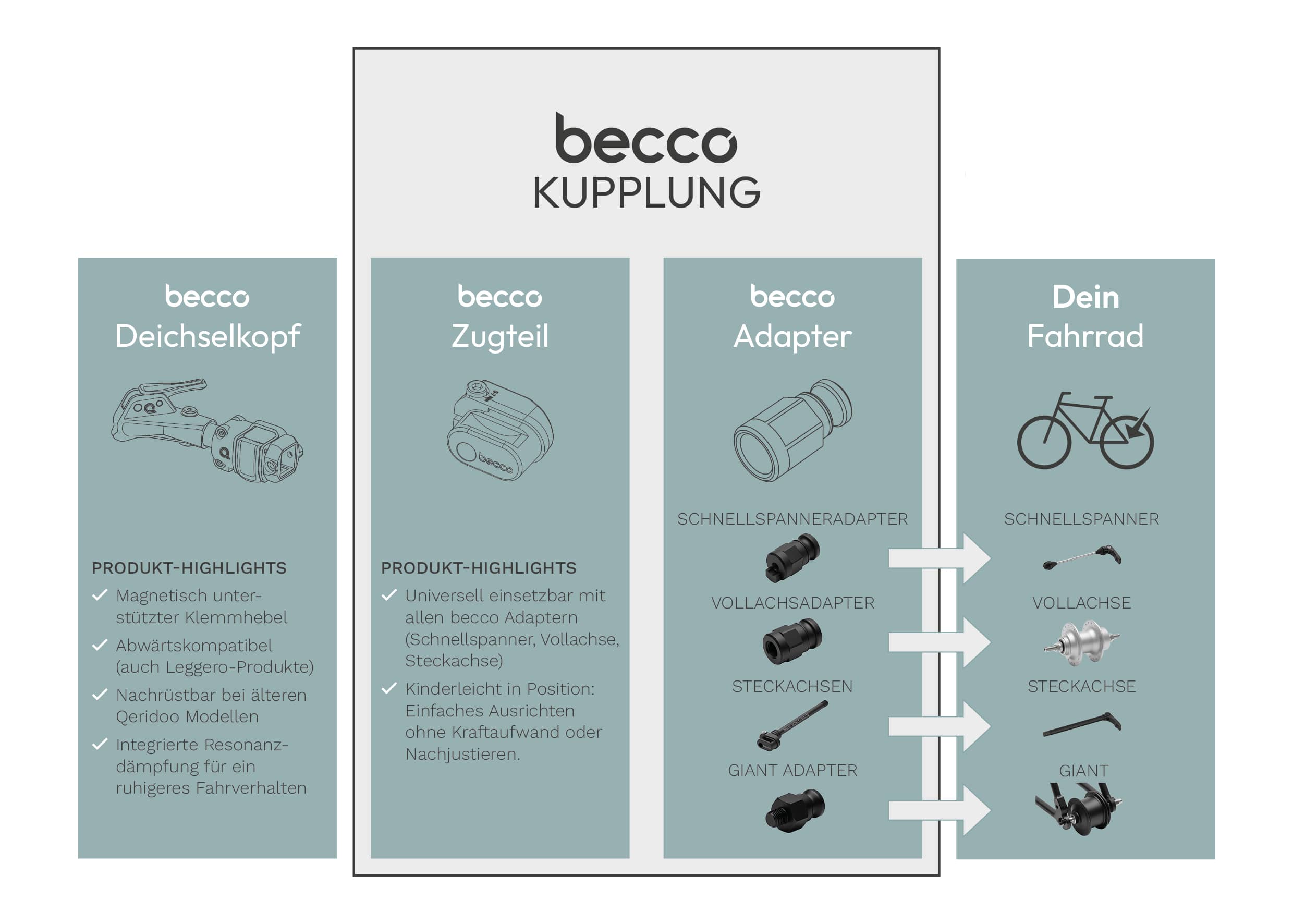 Passend zum Becco Kupplungssystem. Stabile und sichere Verbindung zum Fahrrad.